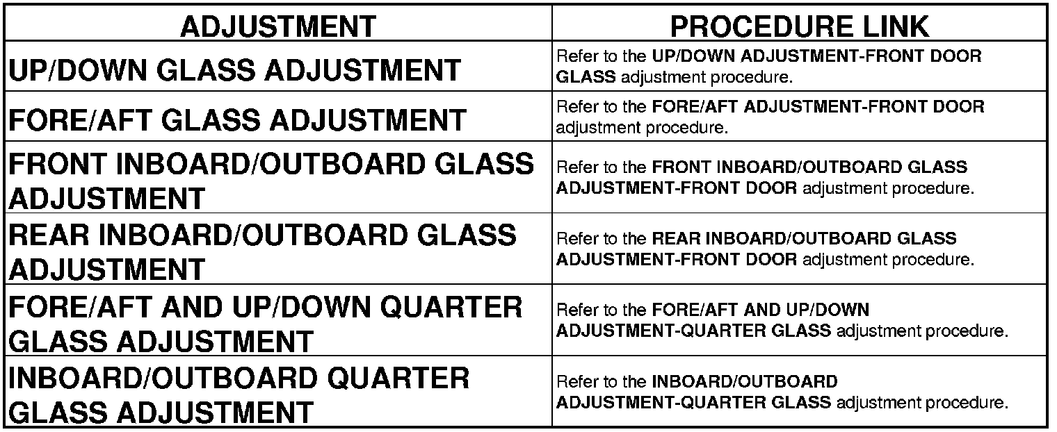 REAR INBOARD/OUTBOARD GLASS ADJUSTMENT-FRONT DOOR