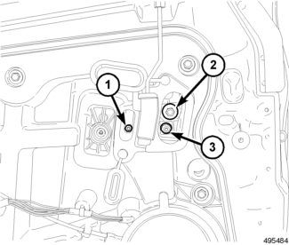 6. If the glass must be adjusted inboard, rotate the inner cam (3) counterclockwise (CCW) for the left front door or clockwise (CW) for the right front door.