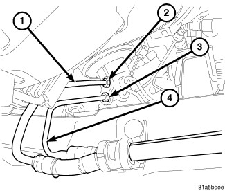 1. Install the pressure hose tube (4) at the gear. Tighten the tube nut (3) to 32 Nm (24 ft. lbs.).