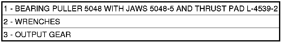 53. Using Gear Puller (1) and Thrust Button (3) remove output shaft transfer gear (2) and select shim.