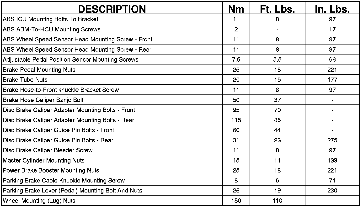 BRAKE FASTENER TORQUE