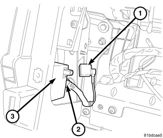 1. Install the remote start antenna (2) and screws (1) to instrument panel assembly. Tighten to 2.5 Nm (22 in. lbs.).