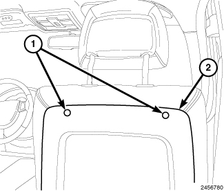 3. For seats equipped with a hard back seat cover (2), using trim stick or equivalent, release the top clips (1).