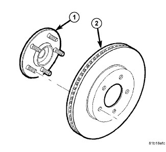 5. Slide the brake rotor (2) off the hub and bearing (1).