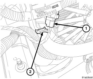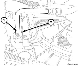 5. Install transmission oil cooler tubes support bracket to radiator (2). Tighten mounting screws to 5 Nm (45 in. lbs.).