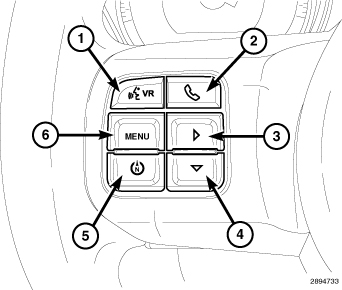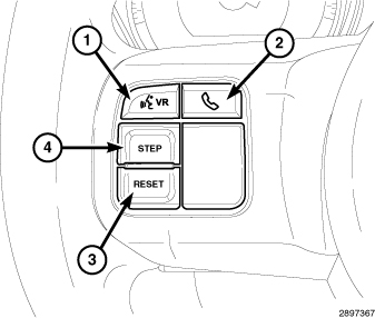 In vehicles not equipped with the optional Electronic Vehicle Information Center (EVIC), there are two methods for checking and adjusting the variance zone setting. The variance zone can be displayed by depressing the odometer/trip odometer push button (21) located on the instrument cluster face just below and to the right of the odometer; or, by using the RESET push button (3) in the EVIC switch pod (also known as the odometer switch pod) located in the left horizontal spoke of the steering wheel. Once the current zone is displayed, it can be adjusted using either the odometer/trip odometer push button on the instrument cluster, or by using the STEP push button (4) in the EVIC switch pod.