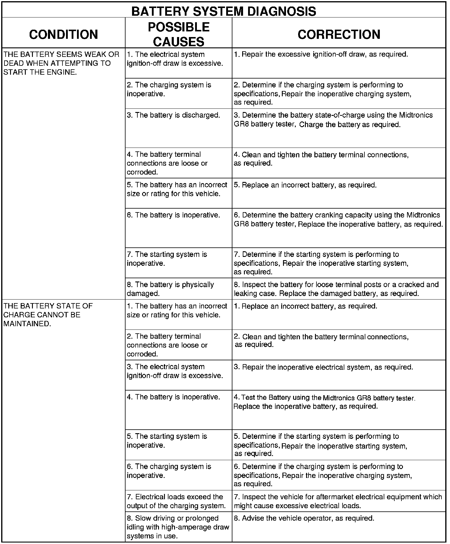 The Midtronics GR8 battery system tester is designed to help diagnose the cause of a defective battery. GR8 Battery Tester / Charger for directions on using the Midtronics GR8 battery tester.