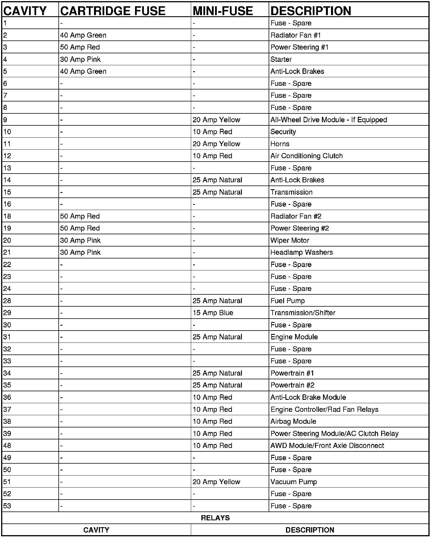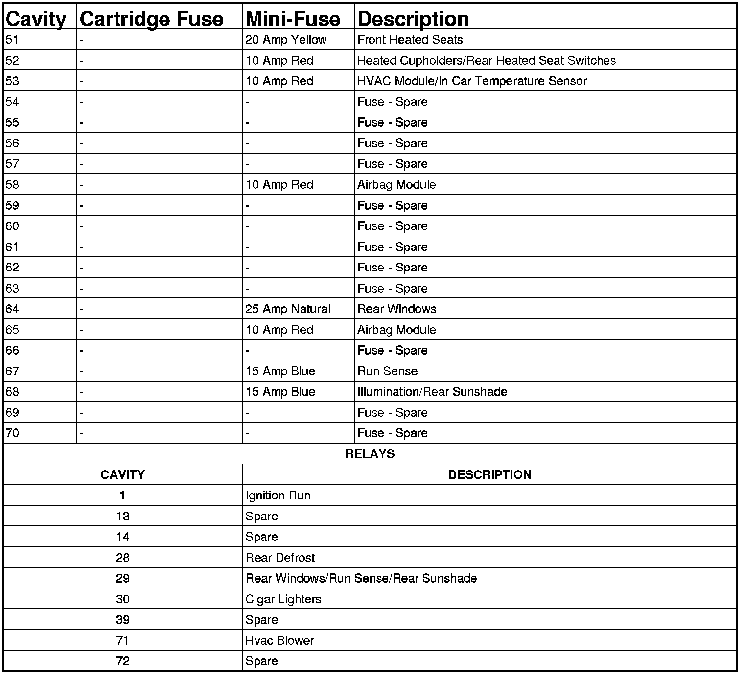 Fuse Locations/Types