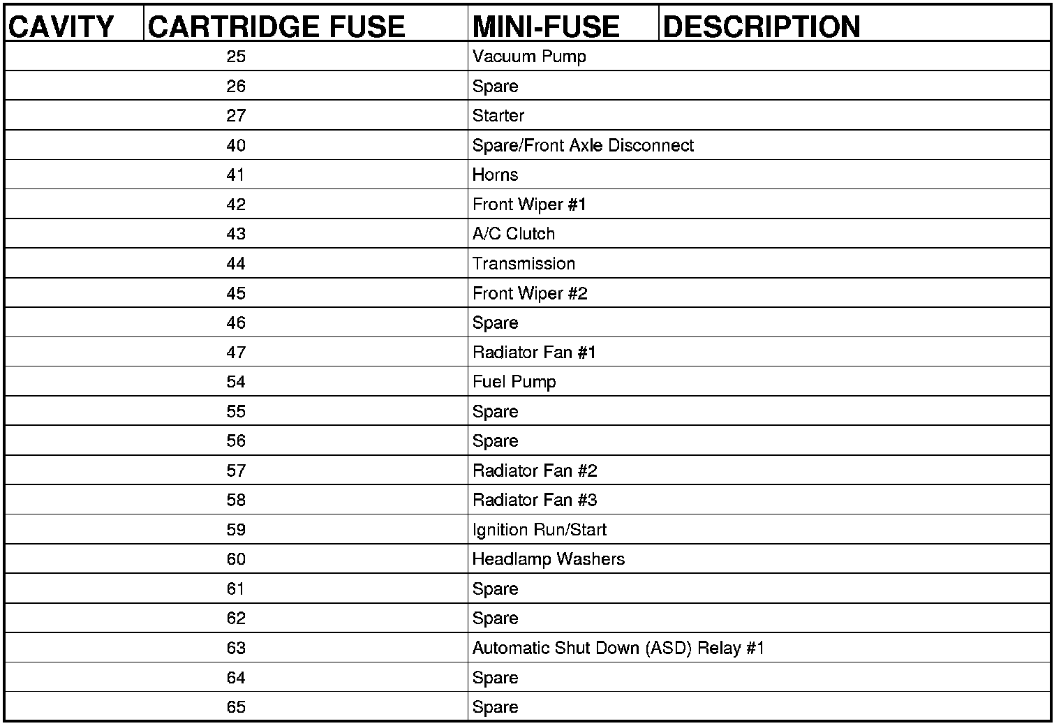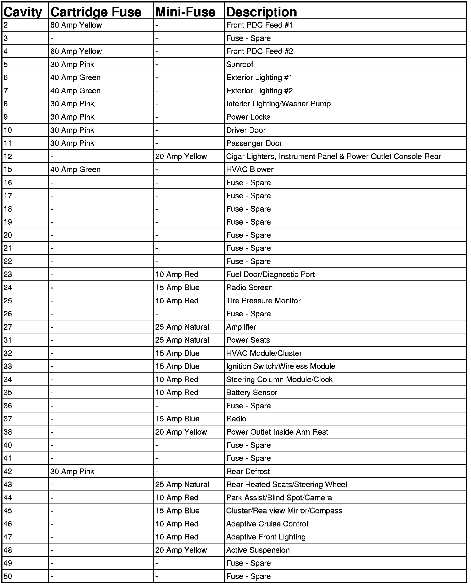 Rear Power Distribution Center Fuses