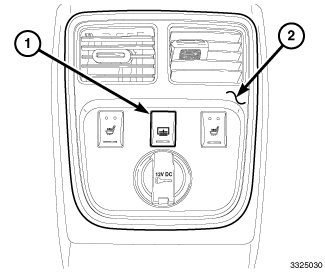 The rear sunshade switch (1) is a momentary contact push button type switch that is mounted at the rear of the center floor console. This switch allows the rear seat passengers to raise or lower the rear window sunshade for improved passenger comfort. Pressing a sunshade switch once will either raise or lower the shade, depending on position. Pressing the switch a second time will reverse the sunshade motor and return the shade to its original position.