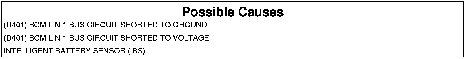 - Repair the short to voltage on the (D401) BCM LIN 1 Bus circuit.