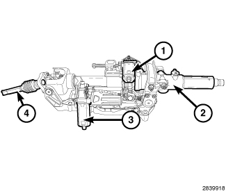 The tilt motor (3) can be replaced separately from the column, but the telescoping motor (1) is serviced with the column. The upper intermediate shaft (4) can also be serviced separately from the column.