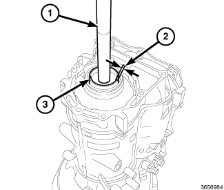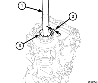 76. Position the new output shaft seal (3) over the output shaft and against the transmission case.