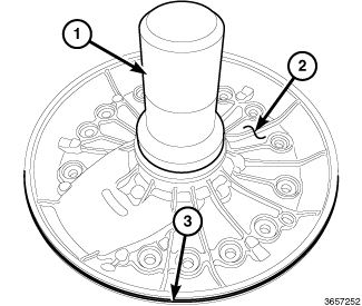 52. Position the B-piston alignment tab (2) above the notch and install B-piston (1) on the assembly.