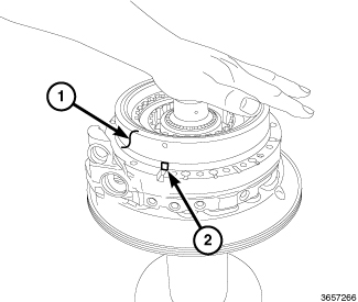 13. Install the P3 planetary carrier (2) in the D clutch drum.