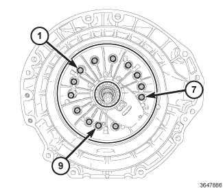 b. Working in a clockwise pattern, beginning with number one, tighten to 10 Nm (89 in. lb.).