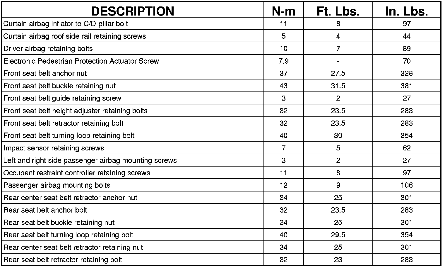 TORQUE SPECIFICATIONS