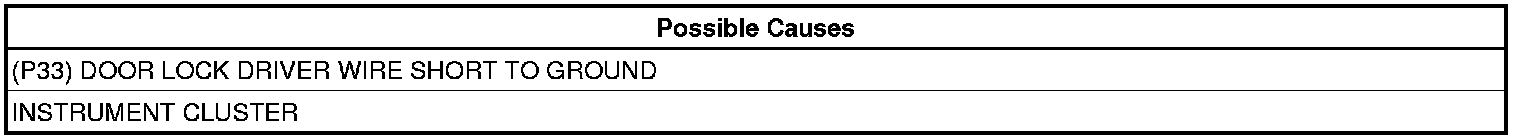 - Repair the (P33) Door Lock Driver wire for a short to ground.
