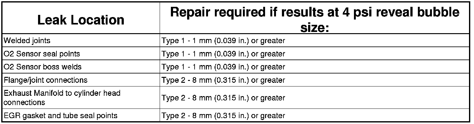 - Type 2 Leak is defined as a leak where larger bubbles 8mm (.031 in.) or greater appear. Any Type 2 or greater leaks found in flange or joint connections, exhaust manifold to cylinder head connections, or EGR gasket and tube seal points must be repaired or the components must be replaced.