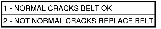 When diagnosing accessory drive belts, small cracks (1) that run across ribbed surface of belt from rib to rib, are considered normal. These are not a reason to replace belt. However, cracks running along a rib (not across) are not normal. Any belt with cracks running along a rib must be replaced. Also replace belt if it has excessive wear, frayed cords or severe glazing.