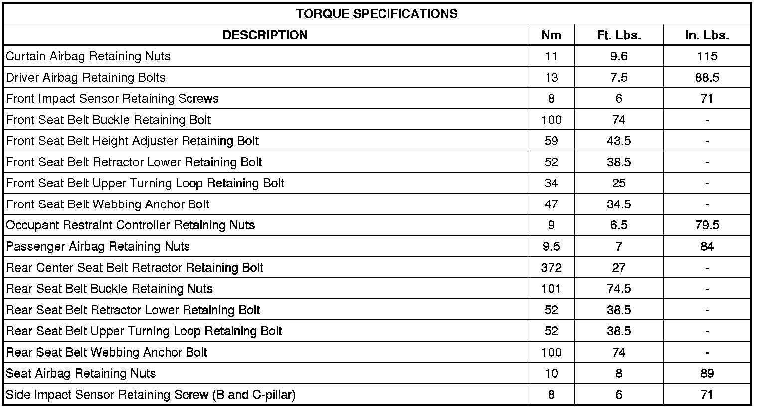 Restraints and Safety Systems: Specifications