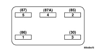 1. A relay in the de-energized position should have continuity between terminals 87A and 30, and no continuity between terminals 87 and 30. If OK, go to 2. If not OK, replace the faulty relay.