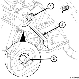 6. Make a reference mark on the toe link cam (3), remove the toe link cam bolt and nut (1) attaching the toe link (2) to the rear suspension cross-member.
