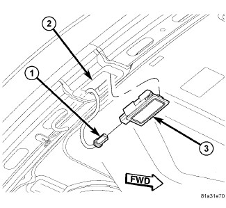 2. Using a trim stick or equivalent, gently pry lamp housing (3) from rear shelf (2), starting from the passenger side.