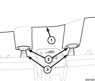 1. Lubricate the two rubber mount sockets (2) on the resonator (1) with Mopar(R) Rubber Bushing Installation Lube.