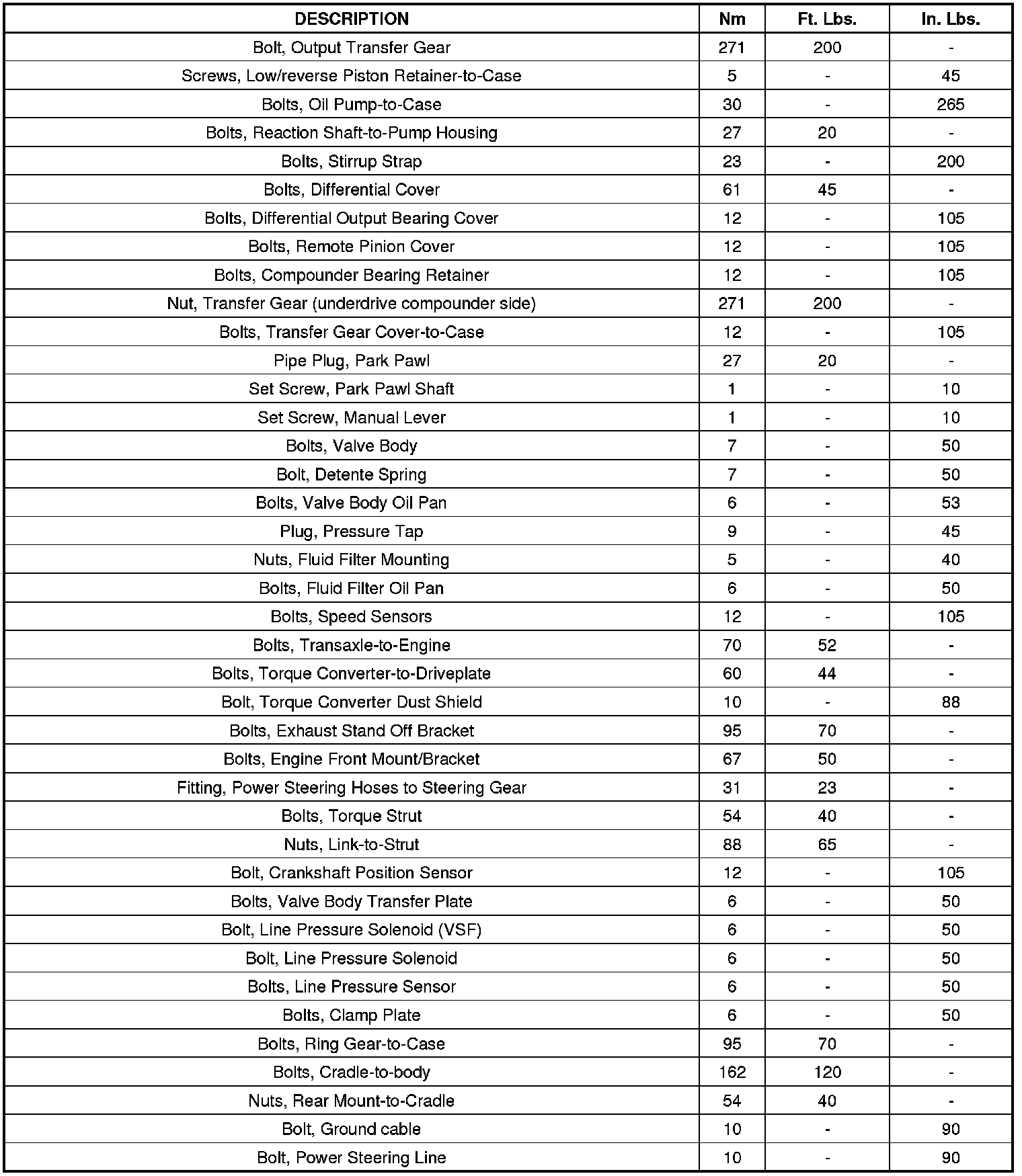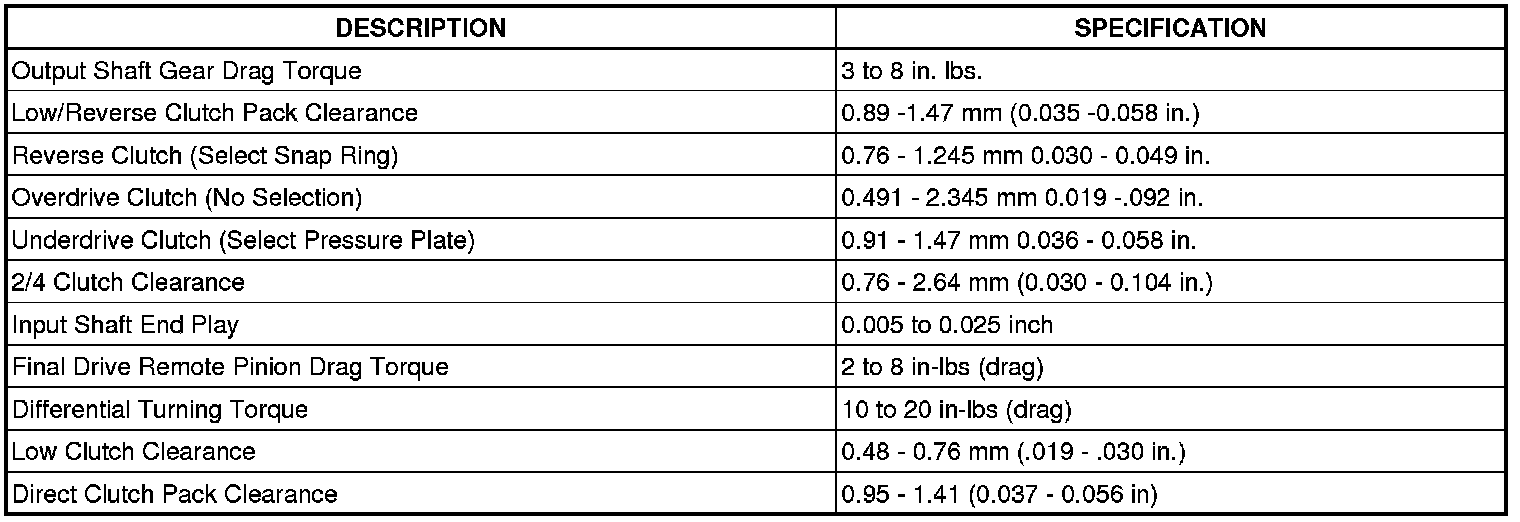 TORQUE SPECIFICATIONS