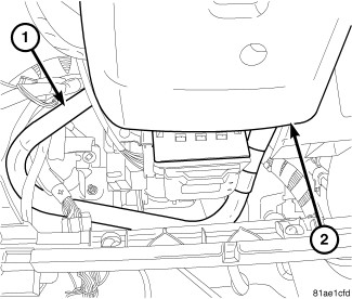 7. Connect the wiring harness connectors (2) to the Steering Column Control Module (SCCM) (1).