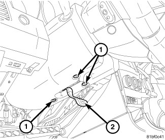 25. Install the steering column cover reinforcement (1) using the four mounting screws (2).