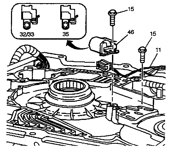 INPUT SPEED SENSOR INSTALLImportant: The tab on the sensor housing (46) fits into the recess on the case boss. For drive sprockets with 35 teeth, use a black sensor housing. For drive sprockets with 32 or 33 teeth, use a natural colored sensor housing.