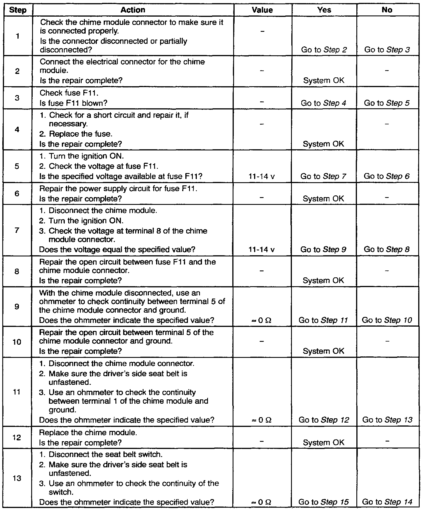 Seat Belt Warning Chime Inoperative