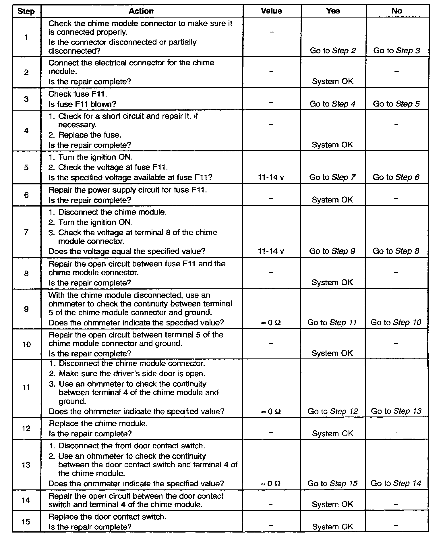 Door-Open Warning Chime Inoperative