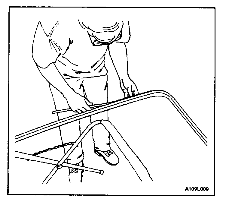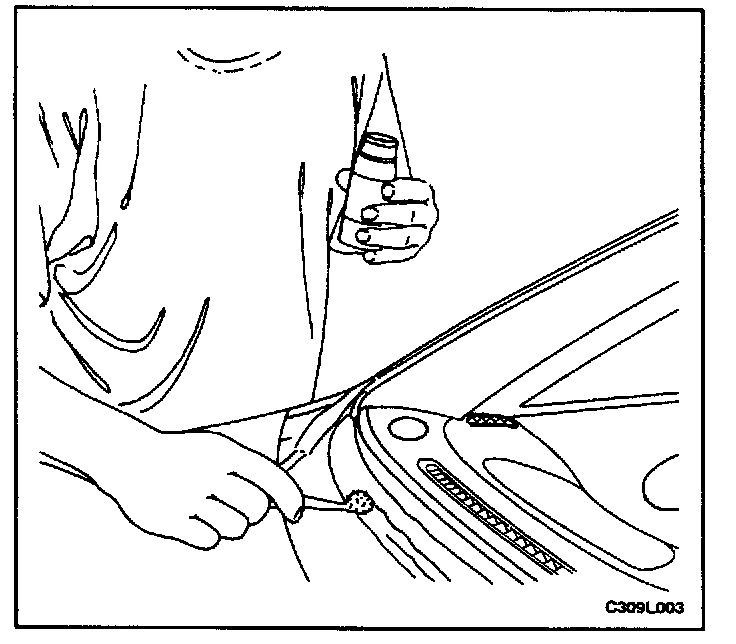 9. Check for waterleaks by pouring water on the windshield. If a leak is found, dry the windshield and fill the area that leaks with adhesive. If the leak persists, remove the windshield and repeat the entire procedure.