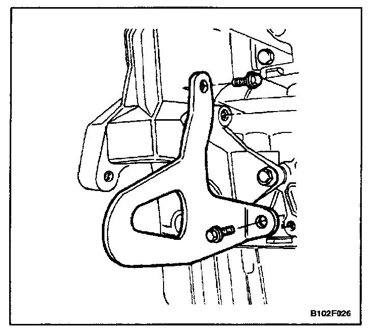 4. Remove the rear A/C compressor mounting bracket bolts and the rear A/C compressor mounting bracket.