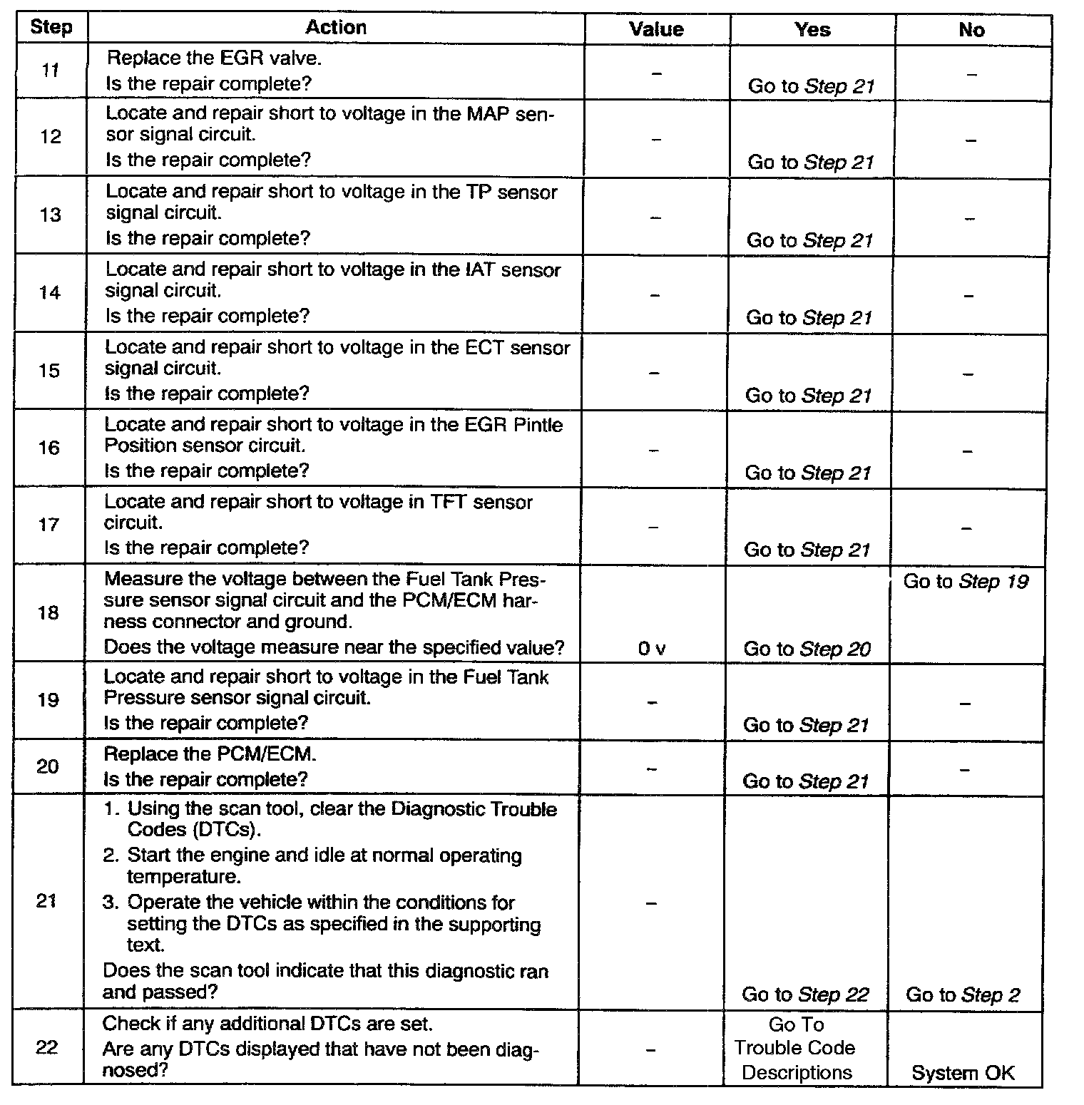 11-19. If a sensor input circuit has been shorted to voltage, ensure that the sensor has not been damaged. A damaged IAT or ECT sensor will continue to indicate a high voltage or low temperature after the affected circuit has been repaired. A damaged ACT, TP, MAP, Fuel Tank Pressure, or EGR Pintle Position sensor will indicate a high or low voltage or may be stuck at a fixed value after the affected circuit has been repaired. If the sensor has been damaged, replace it.