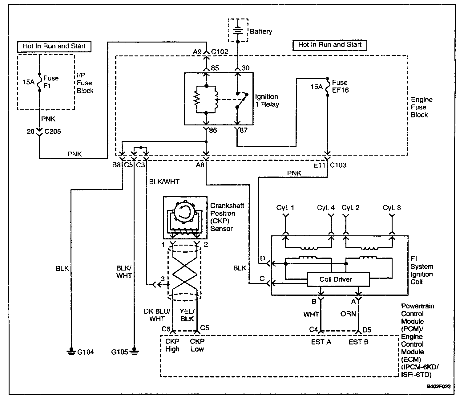 26. If the wiring between the EI system ignition coil and the ignition 1 relay connector terminal 87 is OK, the problem is in the ignition 1 relay circuit.
