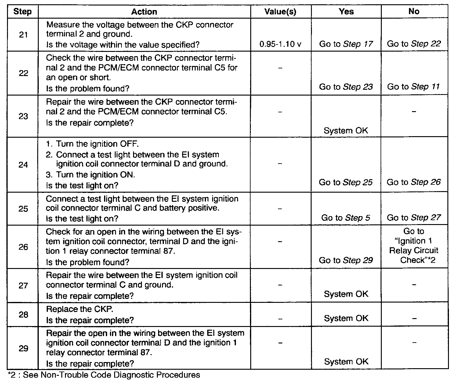 24. This step, along with Step 25, checks for battery voltage and a ground to the EI system ignition coil.