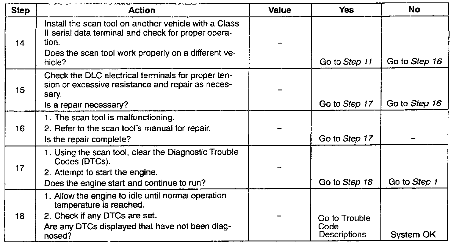 16. The scan tool or associated cables could be malfunctioning. Refer to the scan tool's manual for repair information.