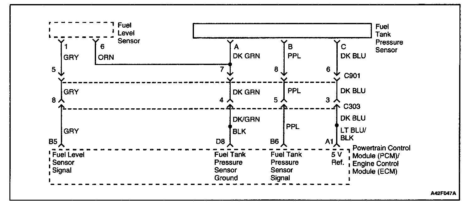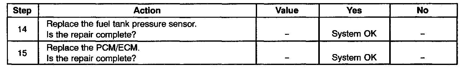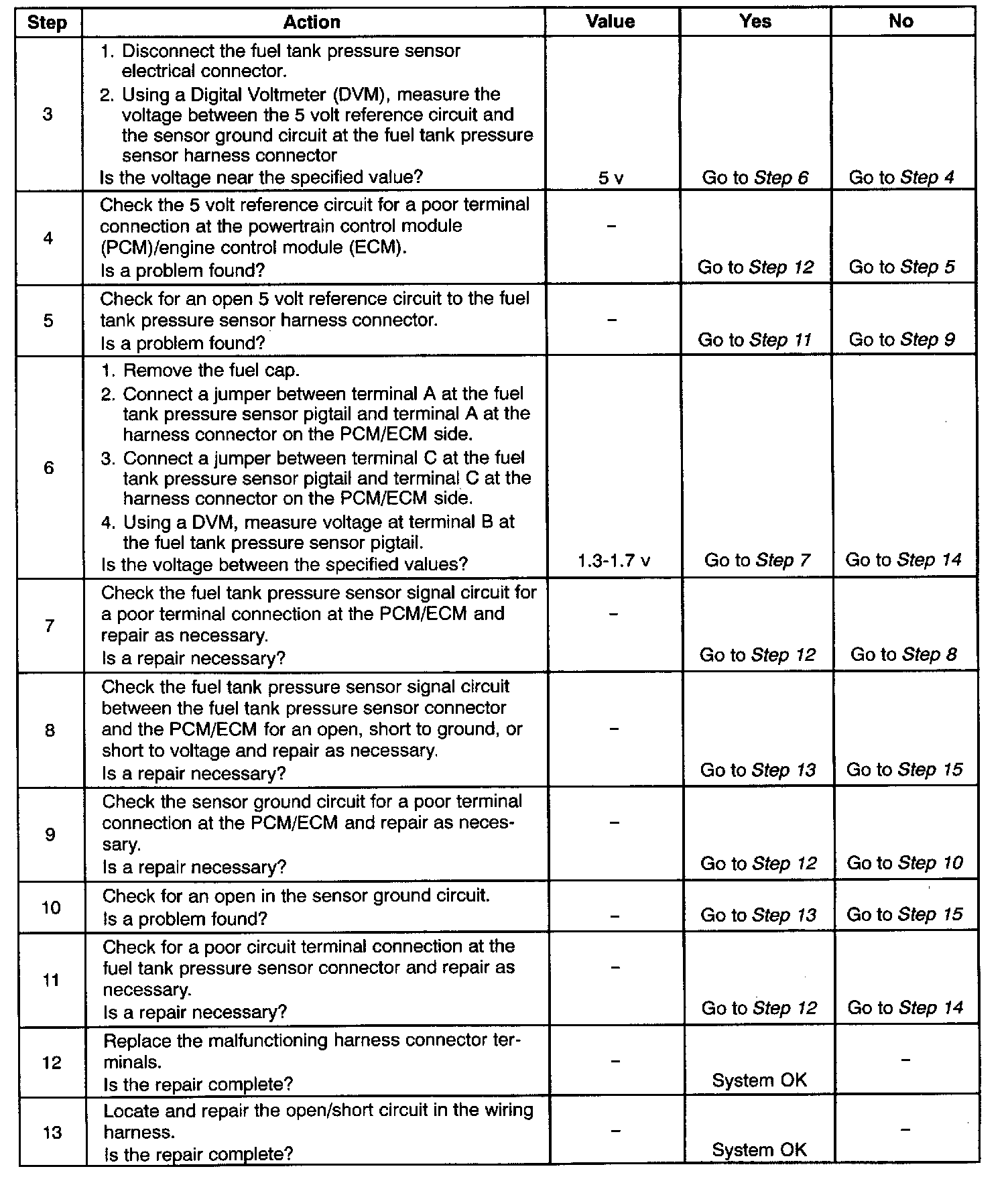 - Damaged harness. Inspect the wiring harness for damage. If the harness appears to be OK, observe the Fuel Tank Vacuum Pressure display on the scan tool while moving connectors and wiring harnesses related to the sensor. A change in the display will indicate the location of the fault.
