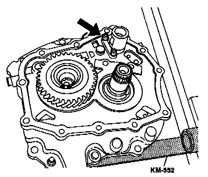 18. Install the input drive fifth gear using the installer KM-554 and the installer sleeve KM-334.