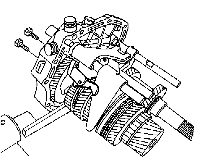 25. Install the bolts and the fifth-gear fork onto the bearing plate.