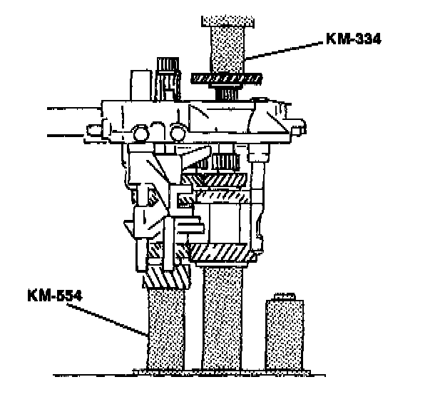 35. Remove the gearshift lever cover from the base KM-113-2 and the fixture KM-552.
