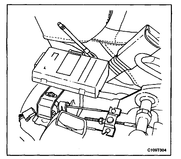 1. Install the module/receiver by sliding it onto its mounting bracket and pushing it toward the rear of the vehicle until it is secure.