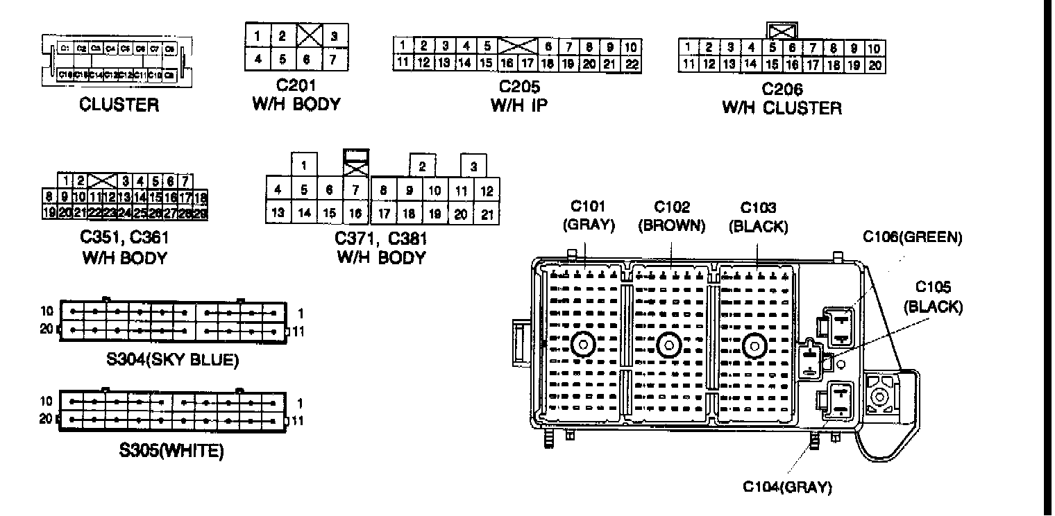 Connector Identification Symbol & PIN Number Position: