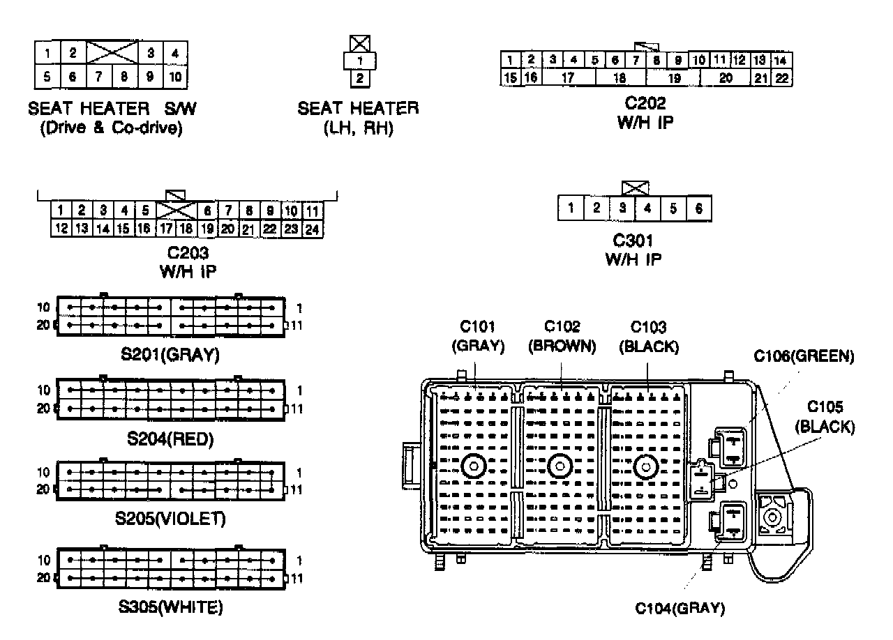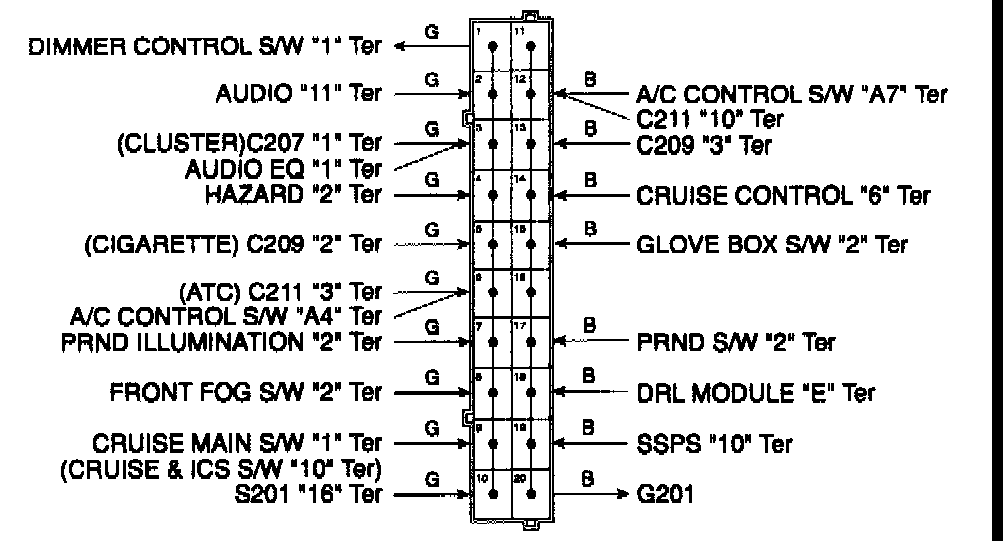 Connector Identification Symbol & PIN Number Position: