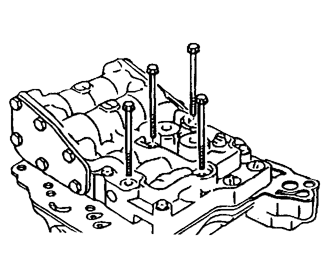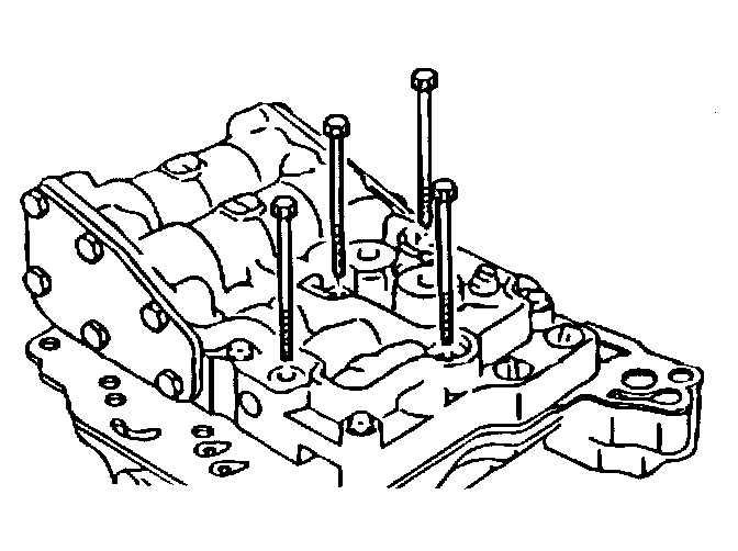 10. Turn the valve body over and install the four bolts. Do not tighten the bolt at this time.