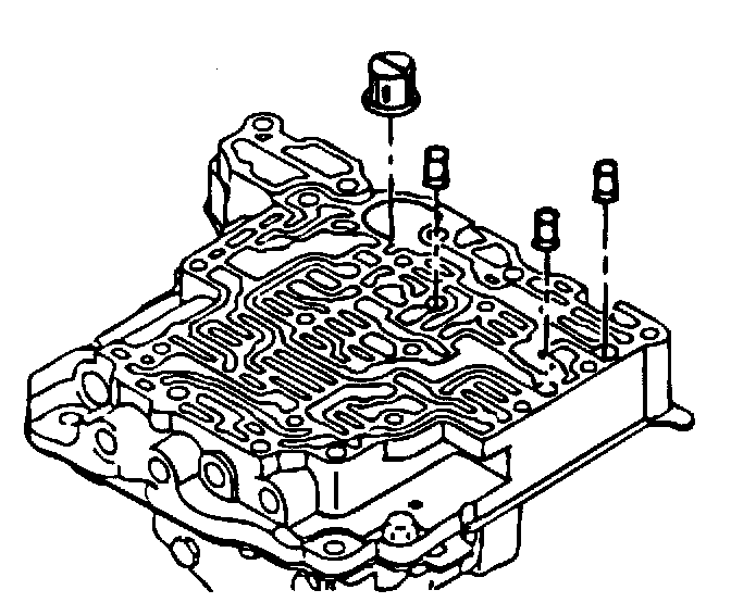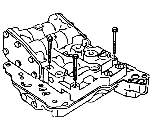 4. Turn the valve body assembly over and remove the four bolts from the lower valve body.